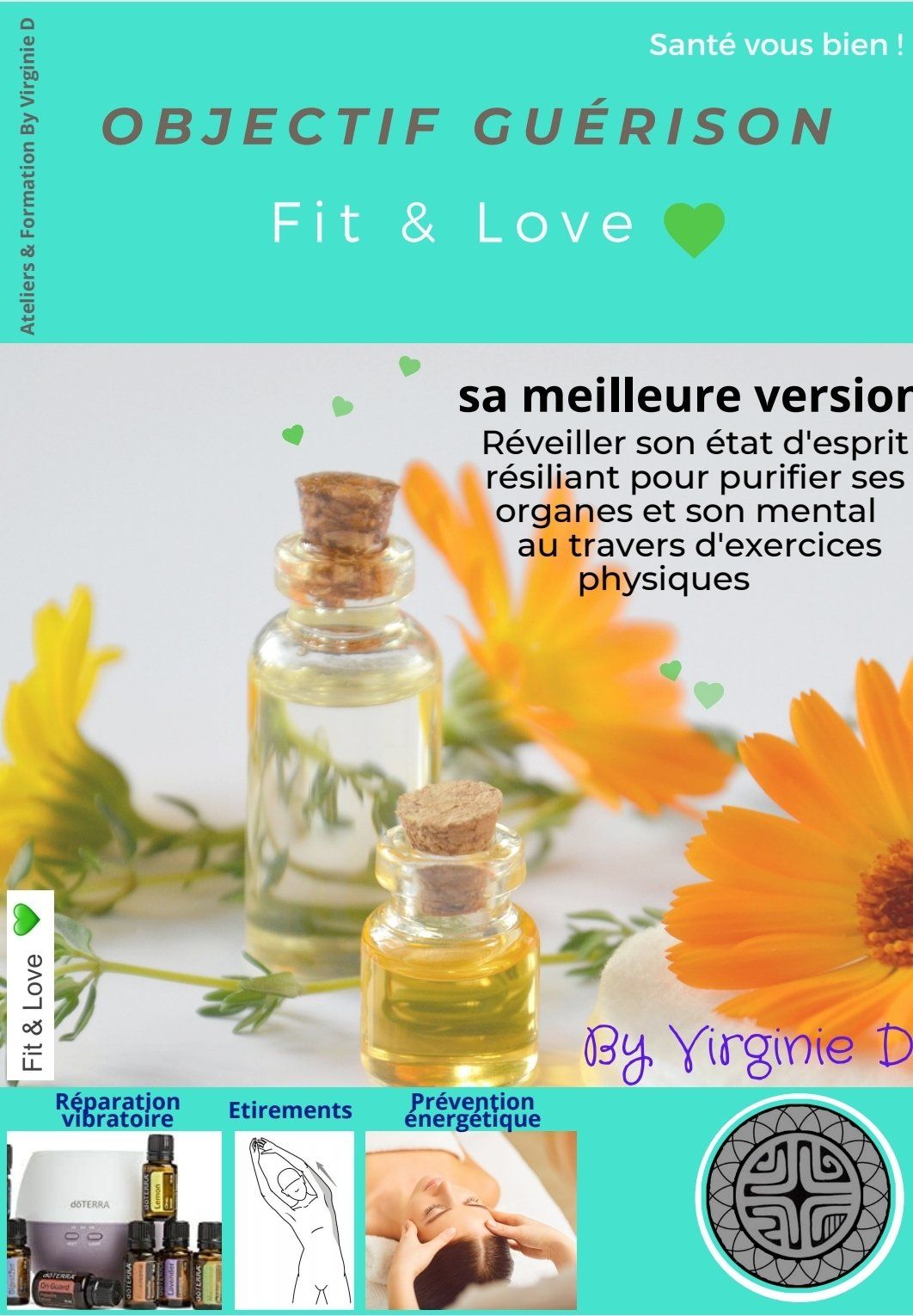 Sous forme d'ateliers ou de formations ou en individuel, tout simplement, l'objectif guérison vise à s'auto-guérir grâce aux techniques faciles et utiles tant au niveau physique et sportif qu'au niveau mental et émotionnel. En passant par la gestion du stress et bien d'autres exercices de respirations ou d'étirements, le concept Fit & Love réveillera chez vous cet "état d'esprit résilient" pour ne pas se faire piéger par les impuretés extérieures et rester ainsi centré sur sa meilleure version.